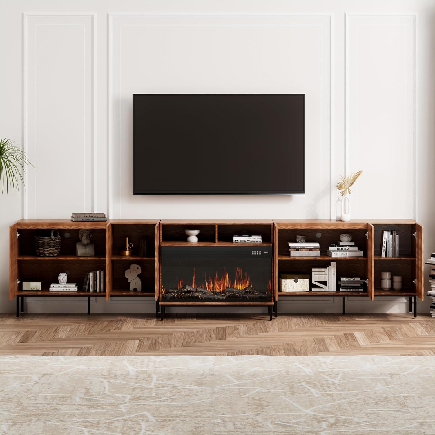 Ample Storage Capacity: This media console boasts two open storage cabinets and four enclosed cabinets, offering ample space for storing all your media accessories, books, and other items.