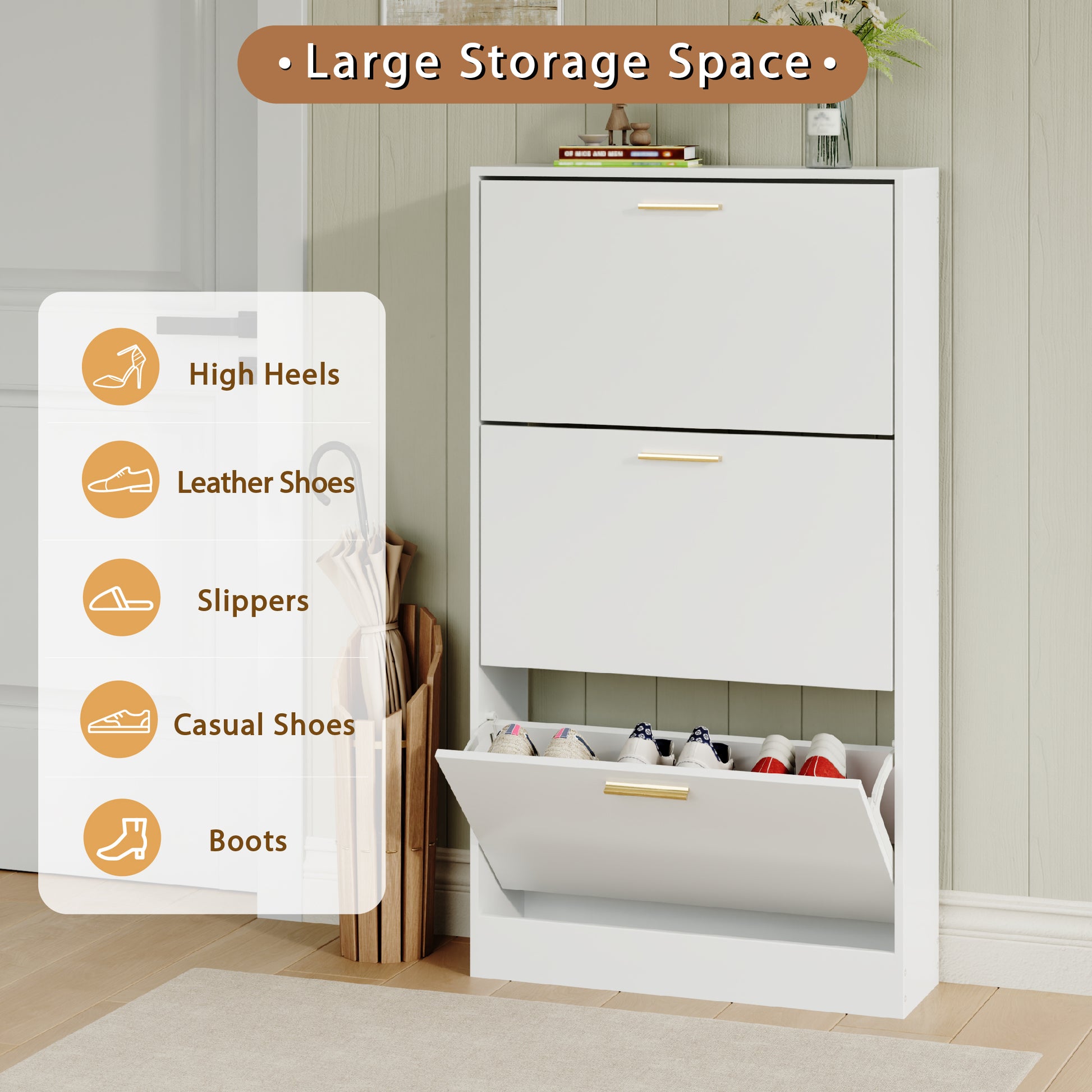 Shoe Cabinet with 3 Flip Drawers Narrow Storage Cabinet Organizer for Entryway