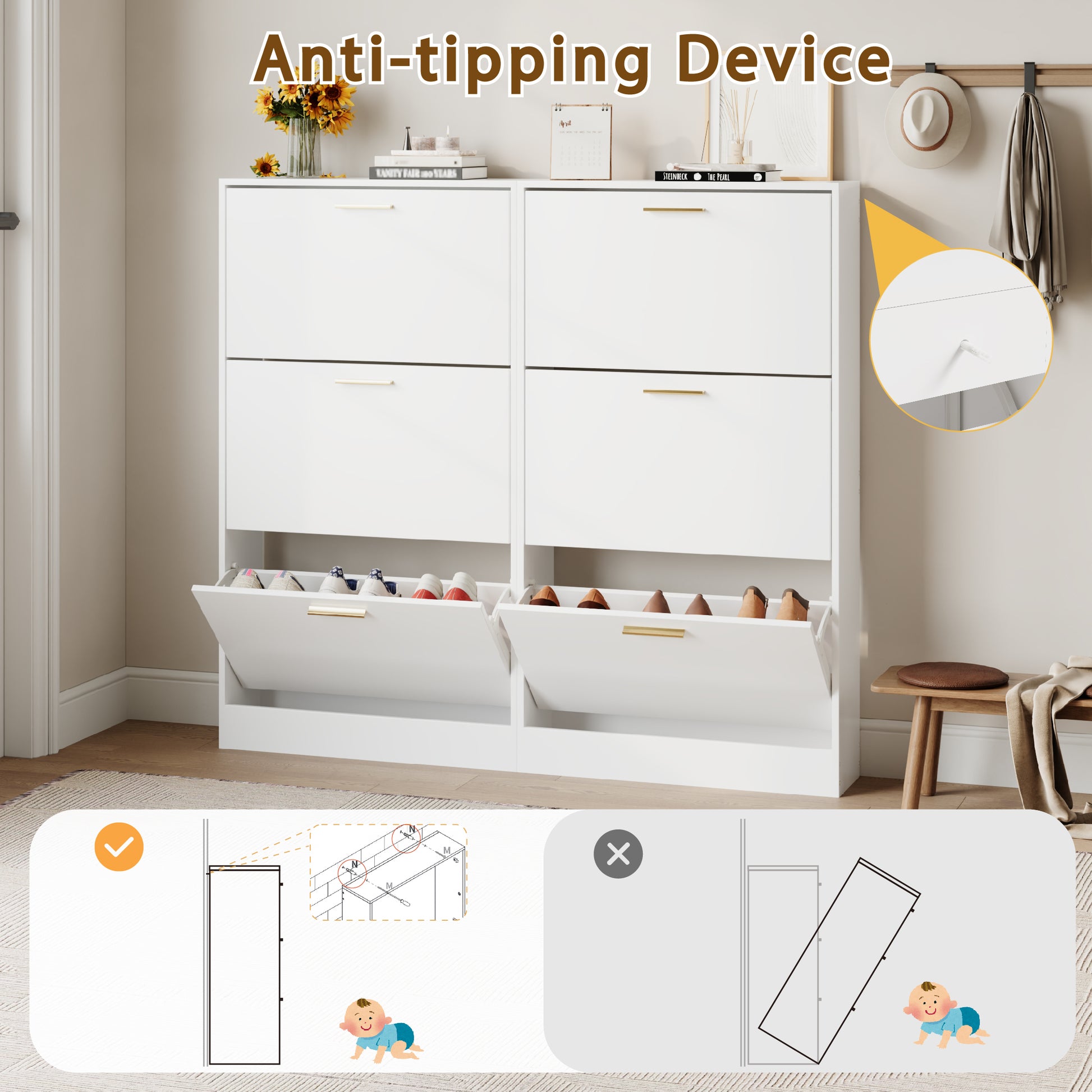 This YouTrend shoe cabinet makes your space well-organized in an orderly way. Perfect for entryways, closets, or any compact space, this cabinet features 3 flip-down drawers that open smoothly. The shoe cabinet can accommodate 8-12 pairs of shoes, allowing you to easily store your shoes and keep the entrance tidy. Crafted from durable MDF materials, the cabinet is both sturdy and lightweight, making it easy to move and assemble. Its minimalist design complements a variety of home decor styles. The flip drawer allows for quick access to your shoes without the need for pulling out heavy drawers, allowing you to quickly store shoes while saving space. Shoe cabinet can be fixed to the wall with screws to ensure the safety of family members. Hurry up and take it home!