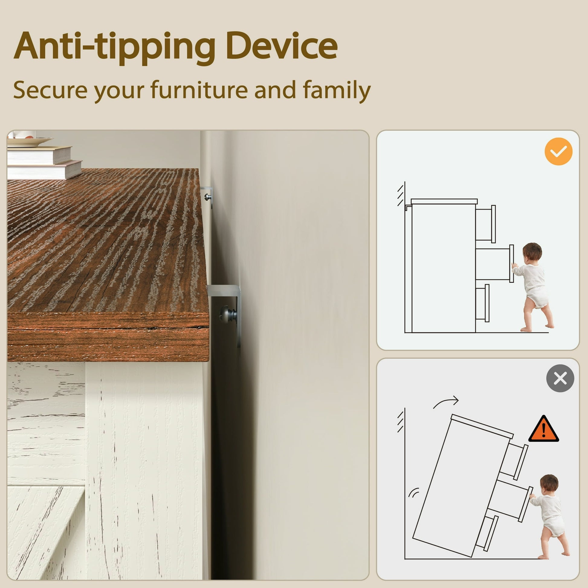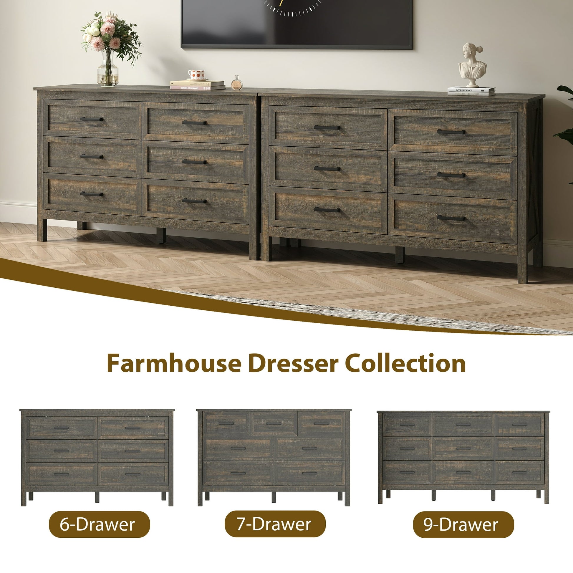 Looking for a farmhouse dresser with ample storage space£¿ This farmhouse YouTrend dresser brings the rustic feel of a charming lodge right into your home. It features rustic natural finish and vintage metal handles. This dresser fetures 6 large and deep drawers to store your T-shirts, socks, pants, shirts and more, helping you keep your bedroom, living room, dinning room and hallway are organized. It also can be used as a TV stand or a sideboard, offering practicality and functionality. Crafted from high-quality wood, this product is durable and easy to clean. Metal handles were designed for this dresser, and the unique metallic luster enhances the texture of the furniture. Equipped with smooth metal drawer slides, the drawers of the closet dresser are effortless to open and close. The adult dresser for the bedroom is secured by a tip-over restraint device to reduce tip-over accidents for more safety. Don't hesitate to organize your items and decorate your home with this YouTrend farmhouse dresser!