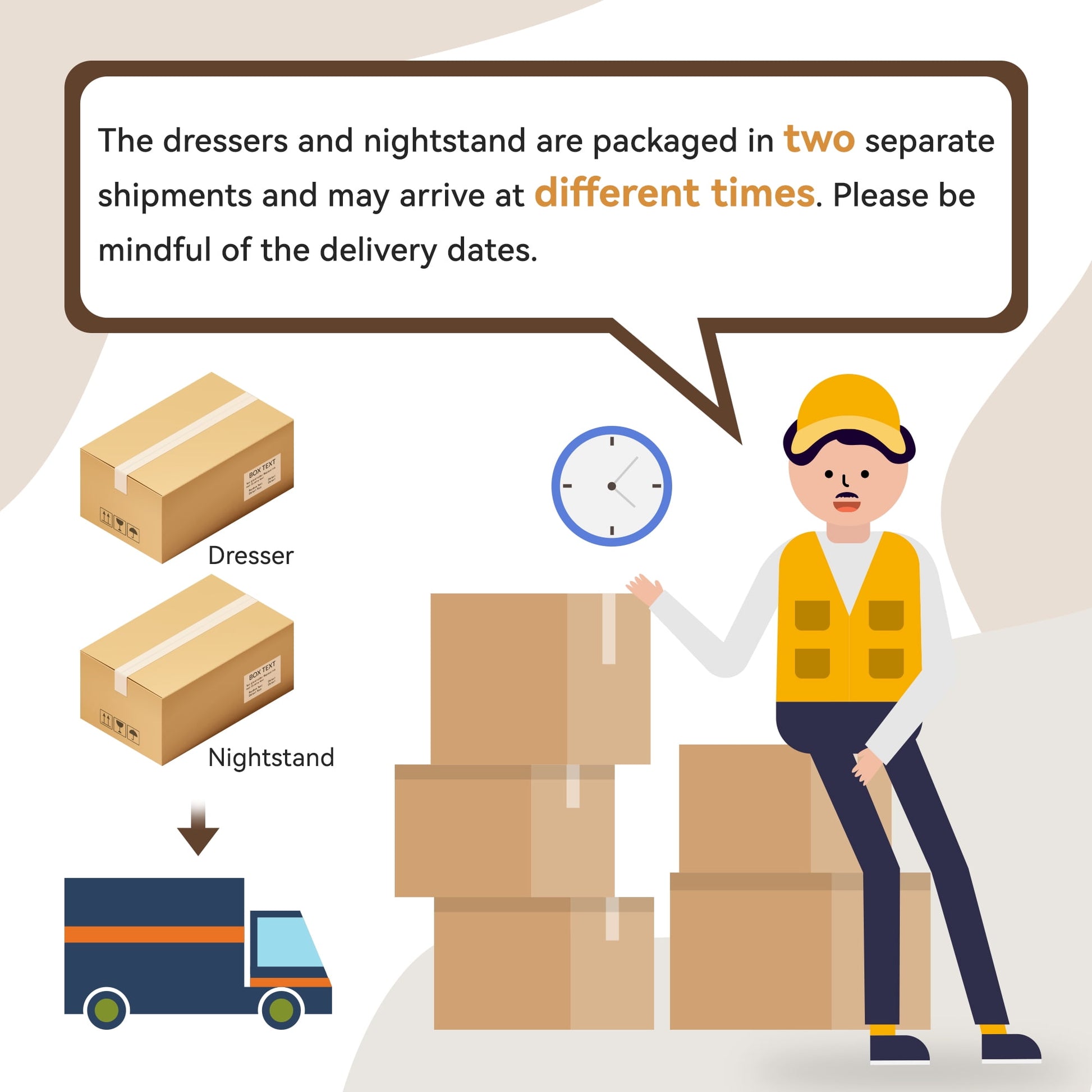 Please note: Dresser and nightstands will be dispatched in two separate packages.