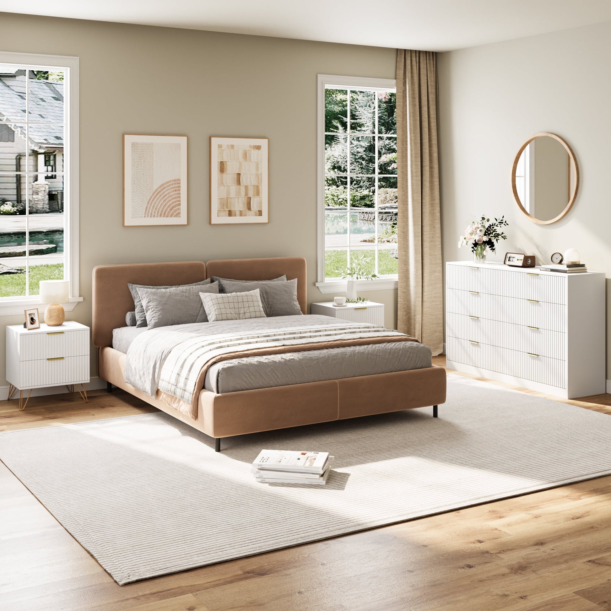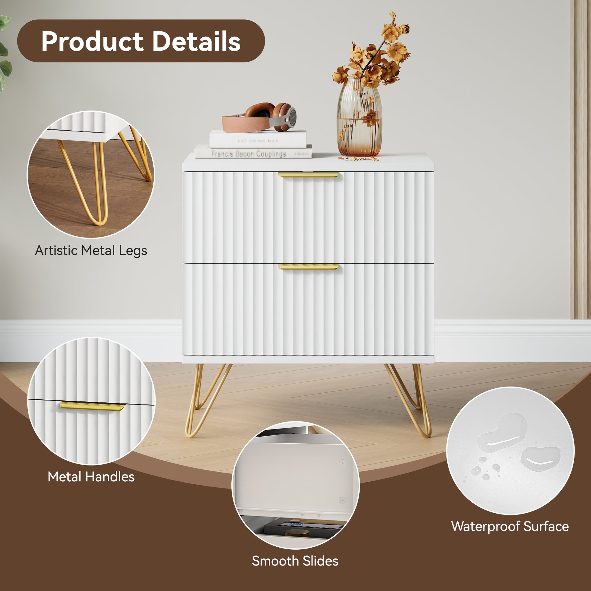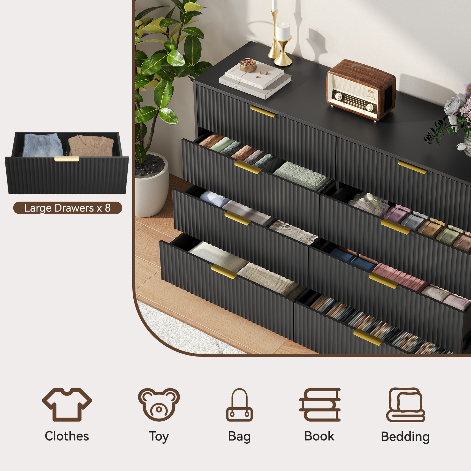 YouTrend bedroom furniture set (dresser + nightstands) boasts a unified recessed design, paired with gold-tone metal handles and legs¡ªblending classic aesthetics with modern flair, balancing style and function.It offers ample storage: a deep-drawer dresser and two double-drawer nightstands organize clothes and daily essentials, ending clutter.Crafted with upgraded craftsmanship, durable engineered wood, metal handles and solid legs, each drawer supports up to 40 lbs for long-lasting use. Its smooth flat surface only needs a light wipe for daily cleaning.This modern set is multi-functional too¡ªworks as an entryway console or TV stand, fitting seamlessly into living rooms/hallways for space-saving style and practicality.