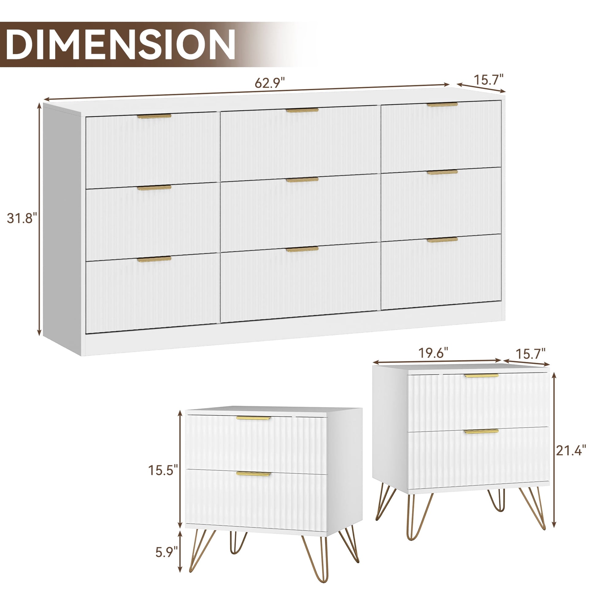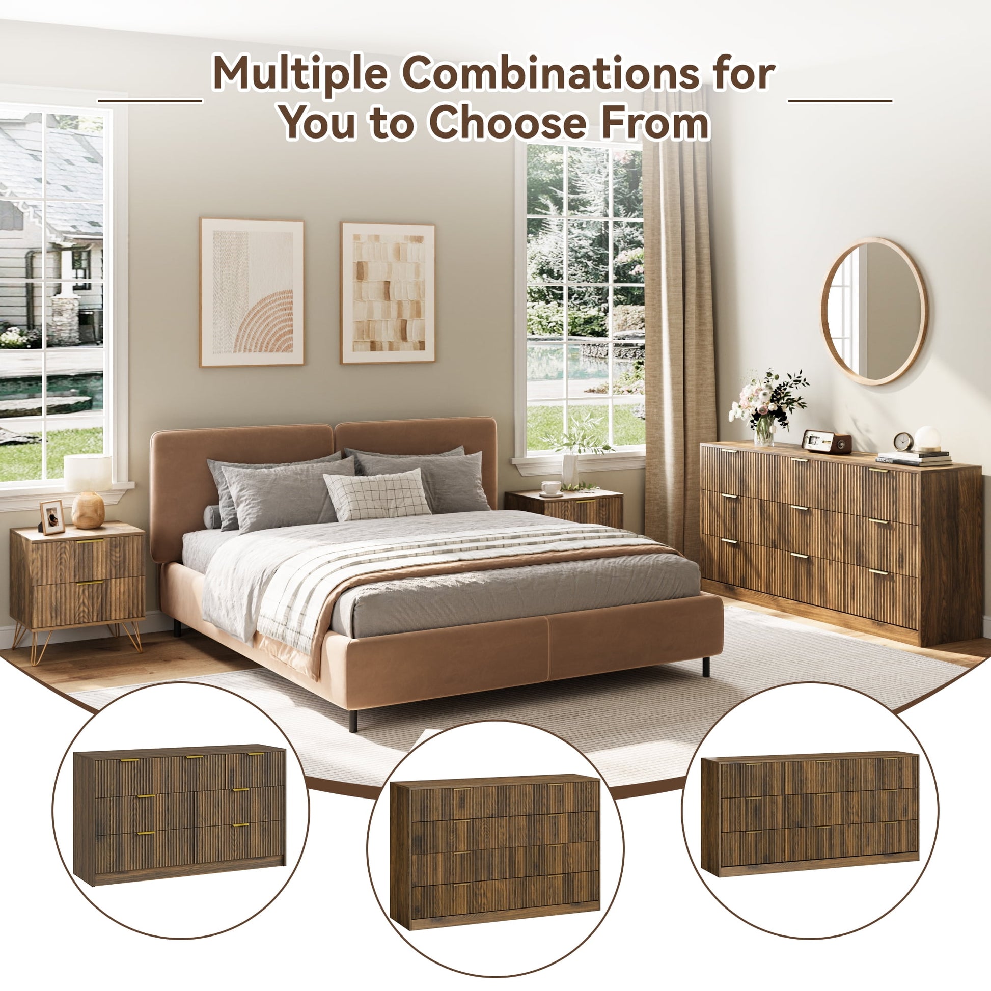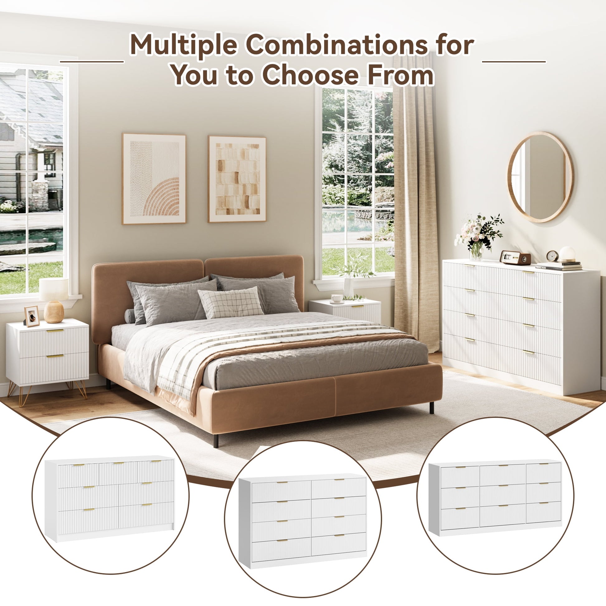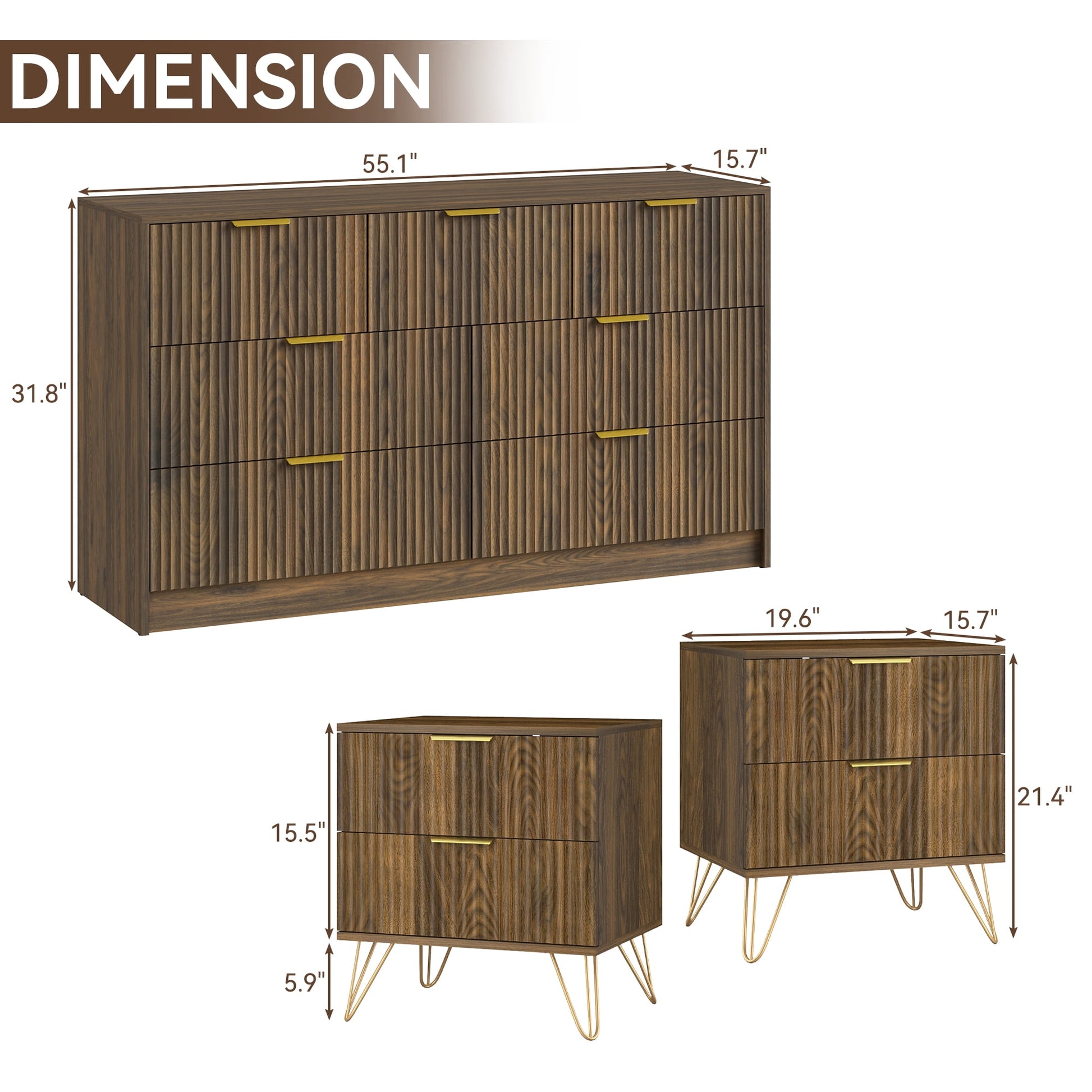 YouTrend 7 Drawer Dresser and Nightstand Sets for Bedroom,3 Piece Bedroom Dresser Set,Fluted Dressers and Nightstands, Modern Bedroom Set