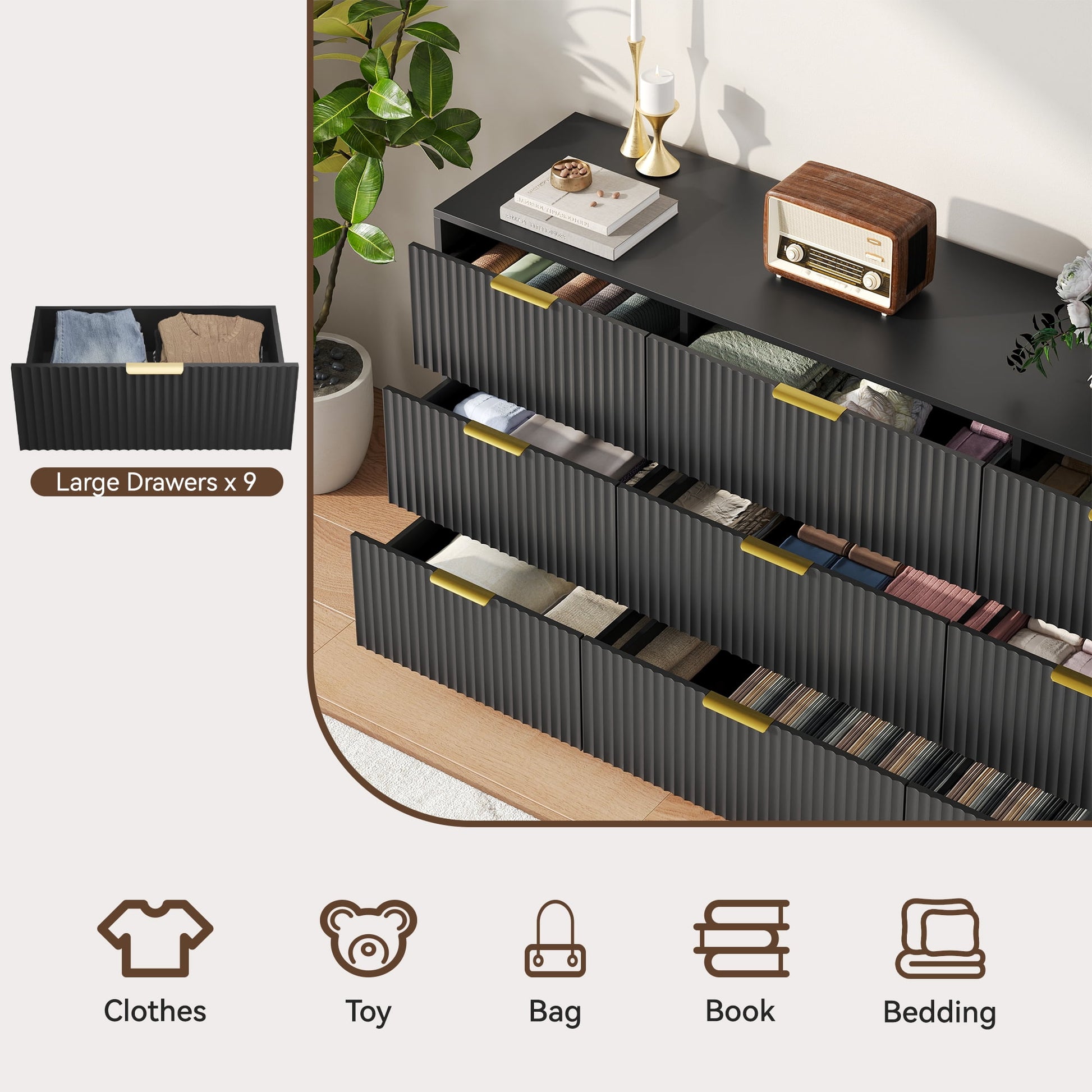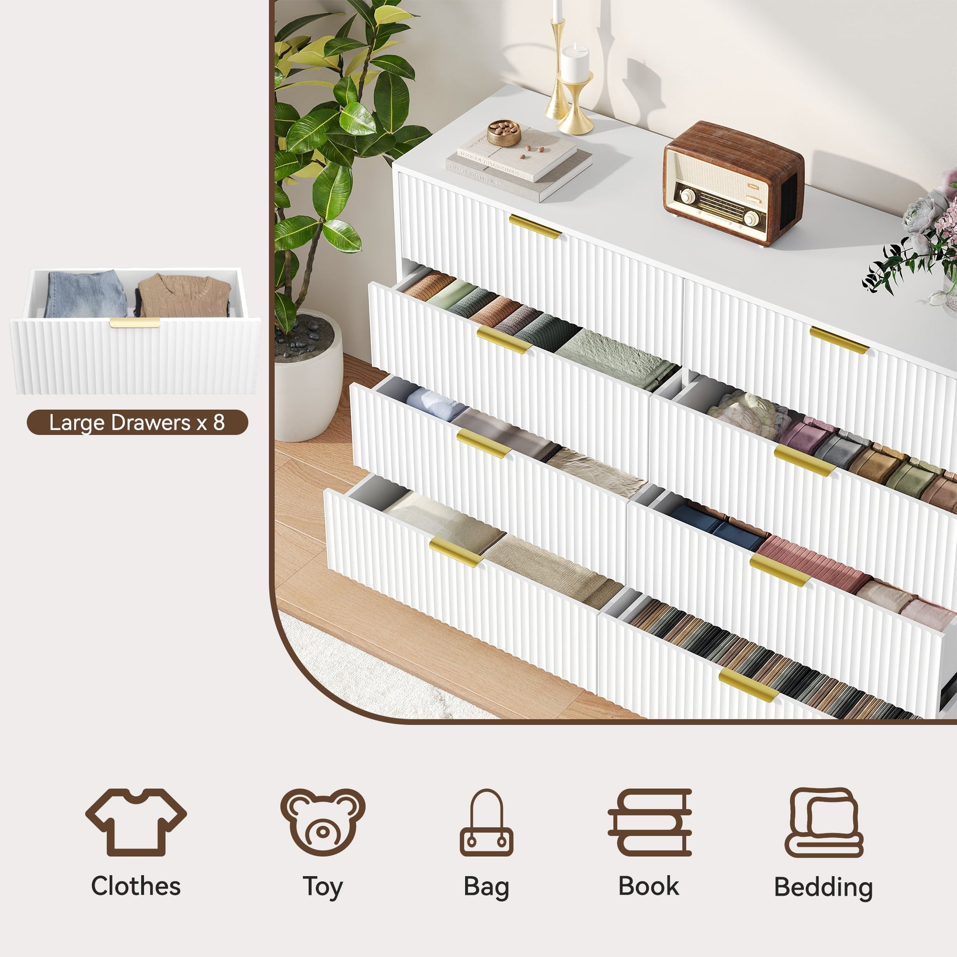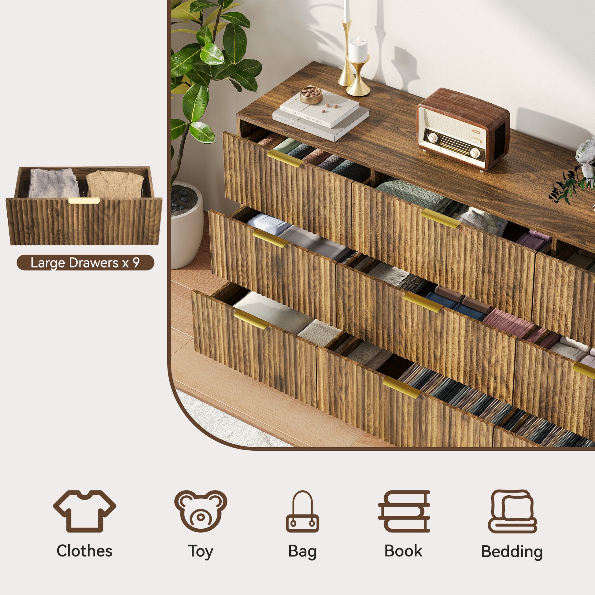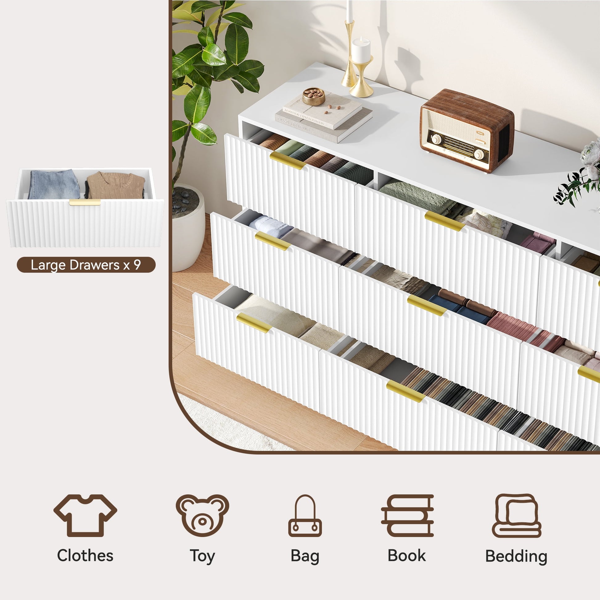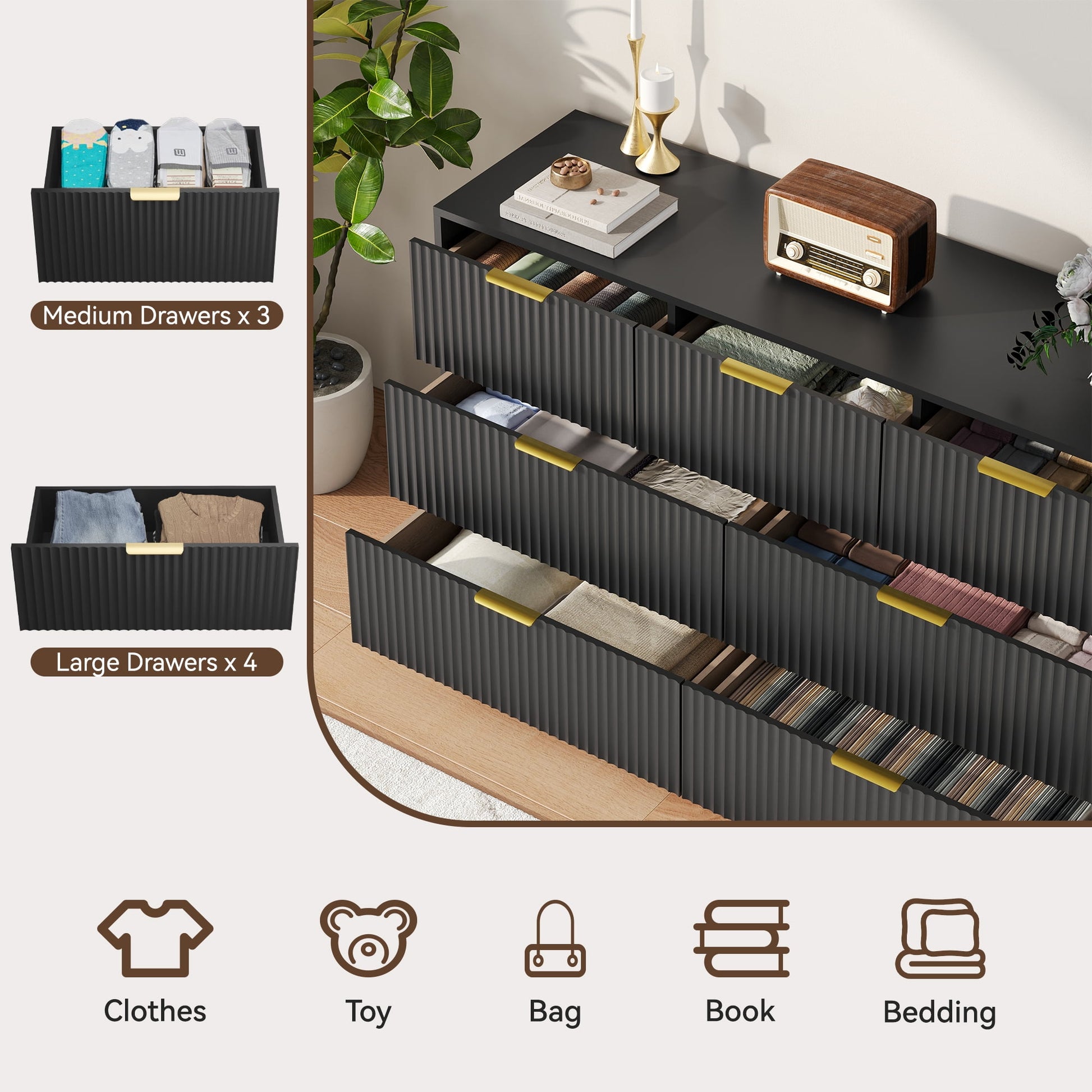 YouTrend 7 Drawer Dresser and Nightstand Sets for Bedroom,3 Piece Bedroom Dresser Set,Fluted Dressers and Nightstands, Modern Bedroom Set
